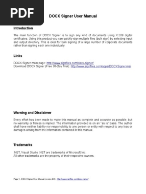 Doc X Signer User Manual Public Key Certificate Computer File