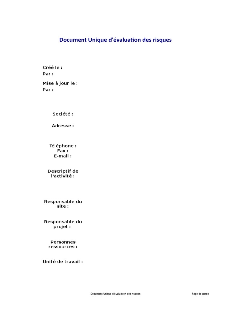 Document Unique D Evaluation Des Risques Professionnels Pdf