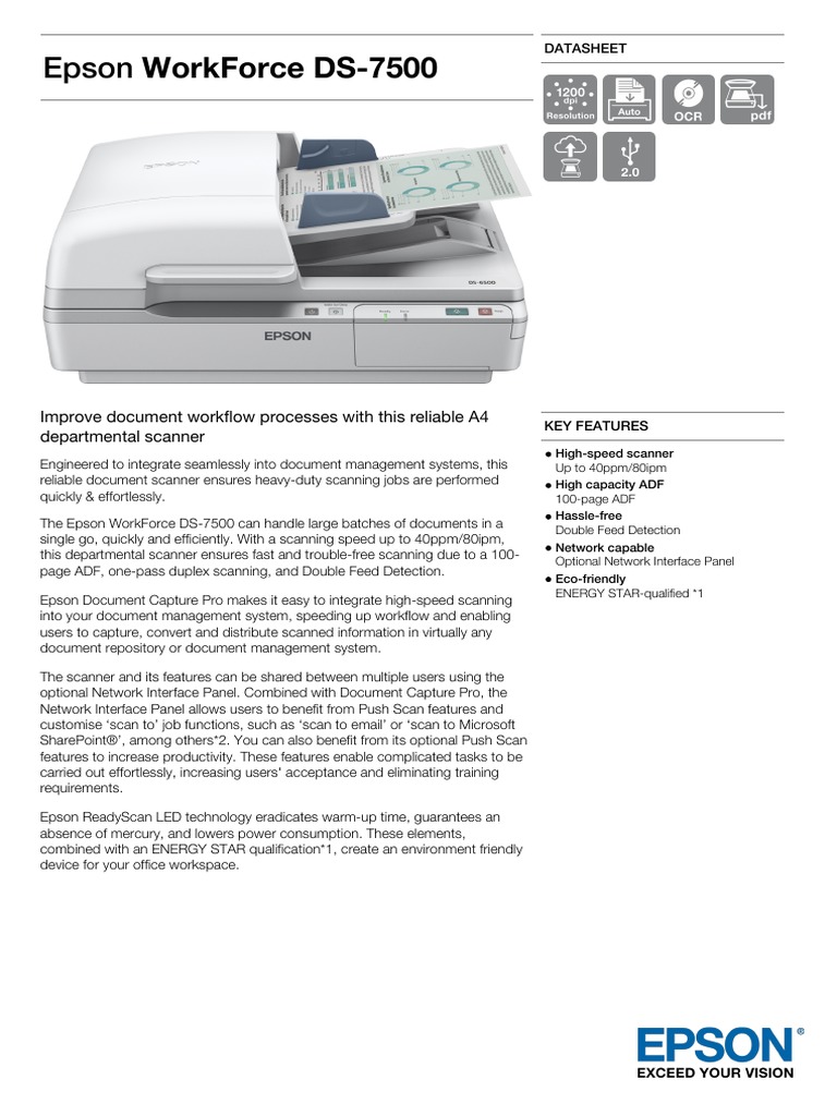 Epson Workforce Ds 7500 Datasheet Image Scanner Office Equipment
