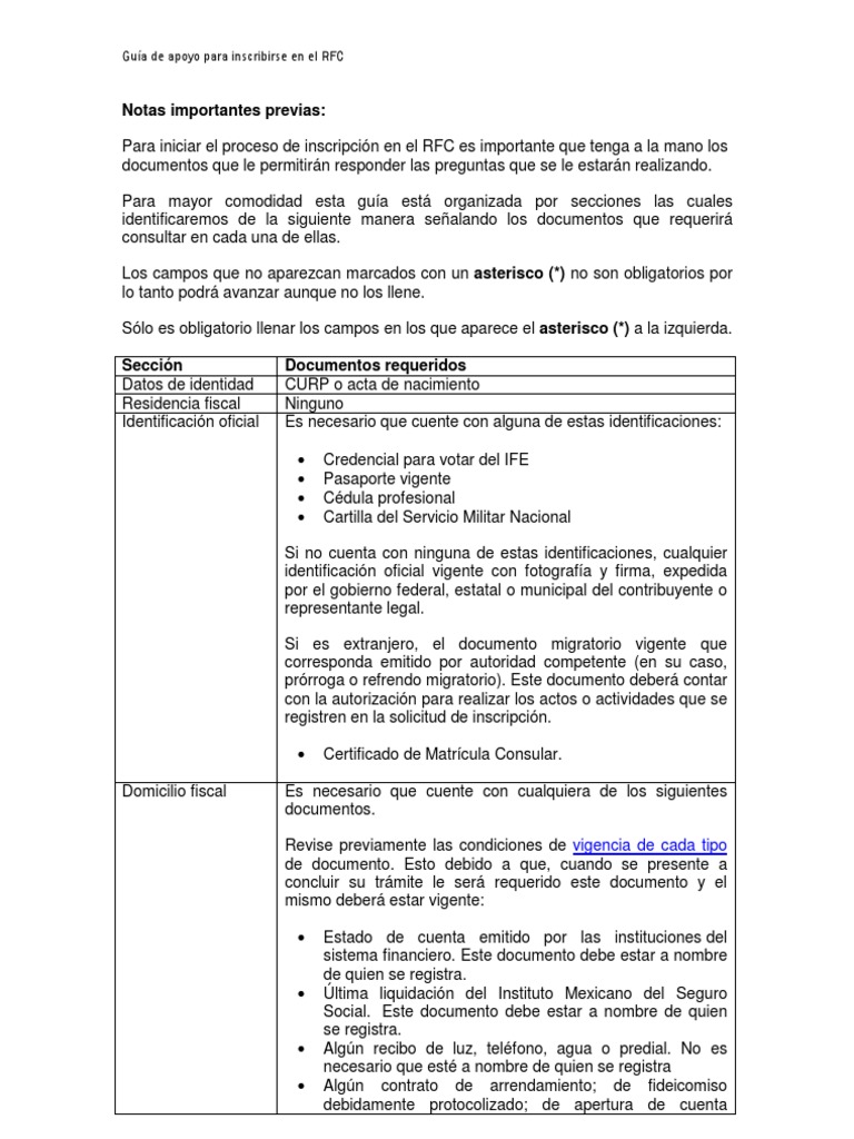 Guia De Apoyo Para Inscribirse En El Rfc Certificado De