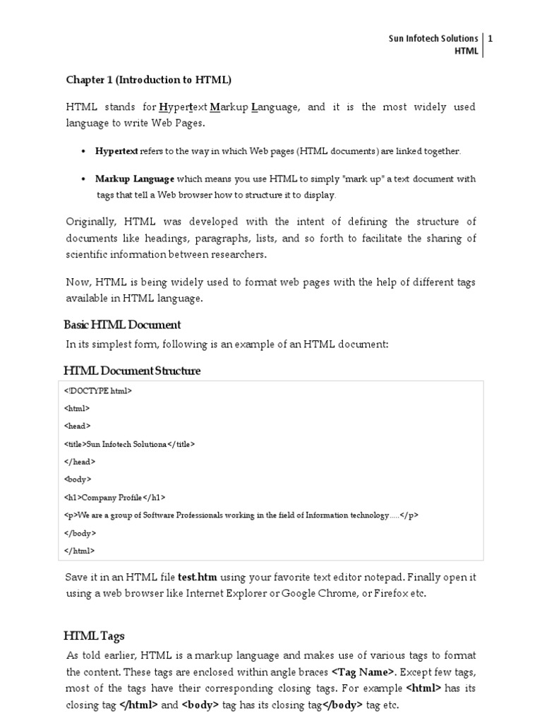 Chapter 1 Introduction To Html Html Element Html