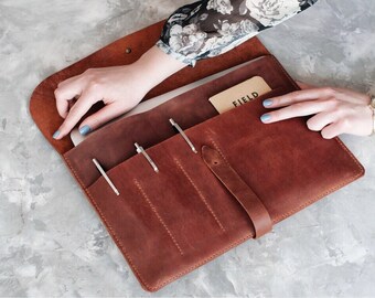 Leather Folder Document File Folder Leather Zipped Folder Dark Brown