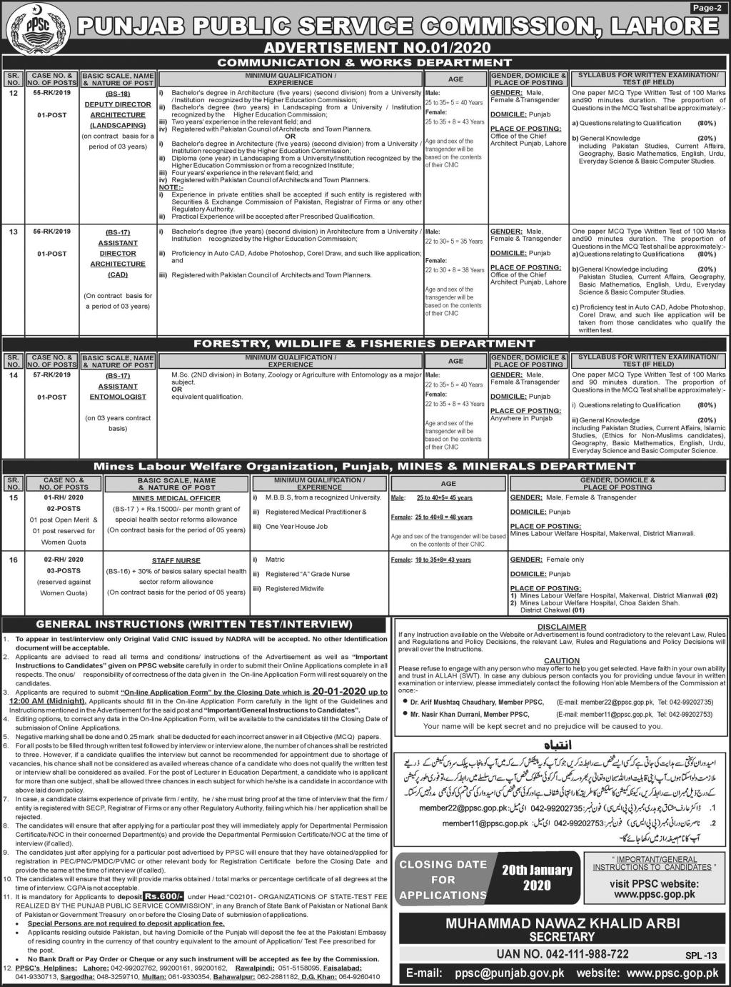 Ppsc Jobs 2020 January Latest Advertisement 01 2020
