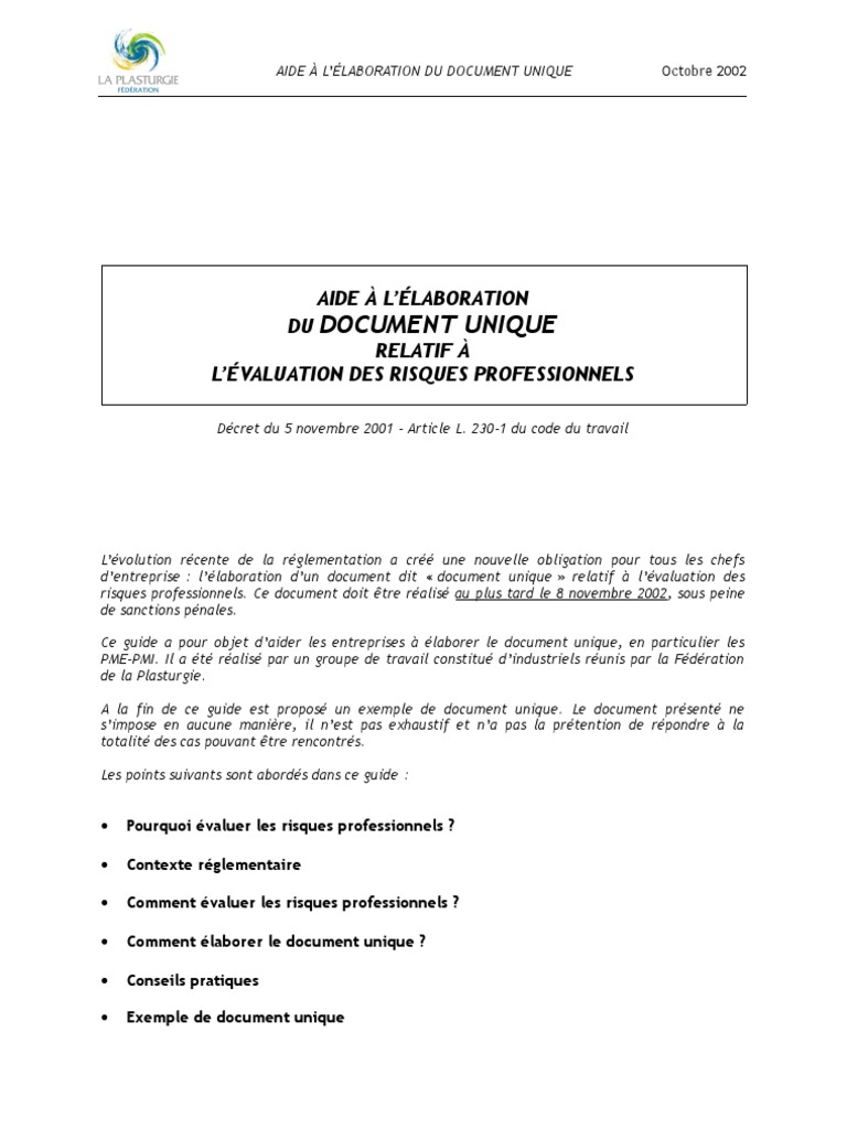 Le Document Unique Mode D Emploi