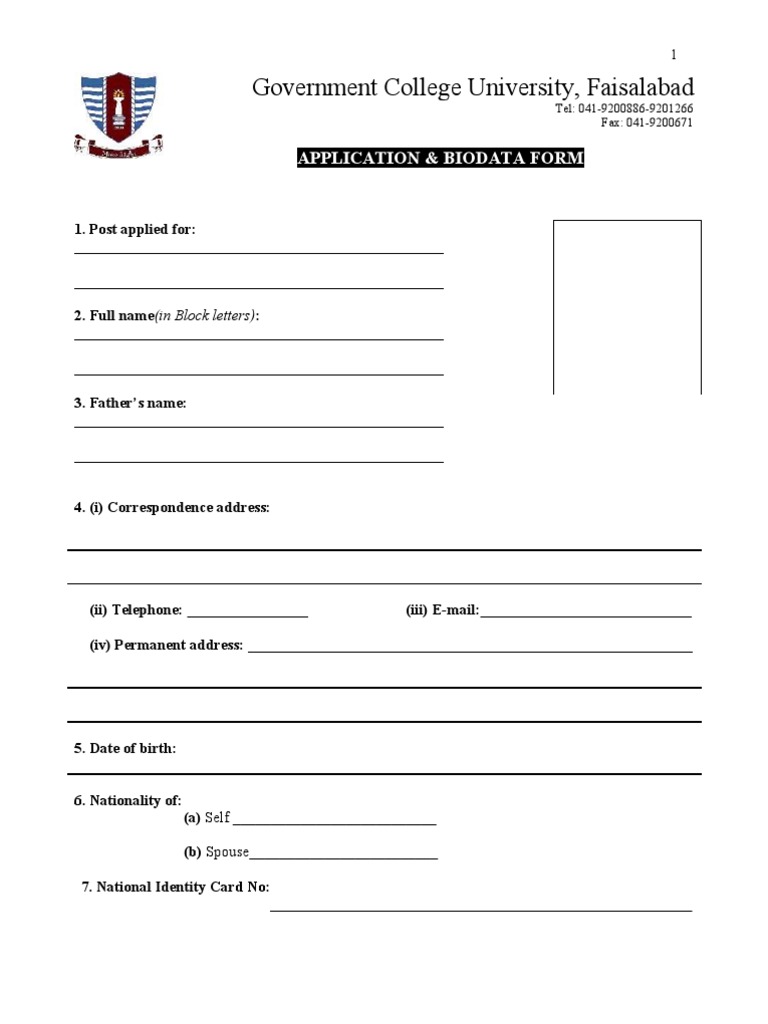 Bio Data Form Pdf For Job Application Early Childhood Education