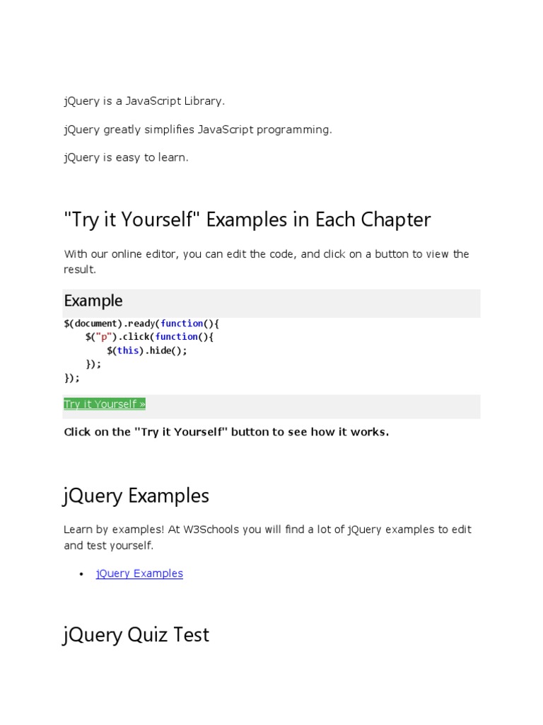 Jquery Tutorial Www W3schools Com J Query Document Object Model