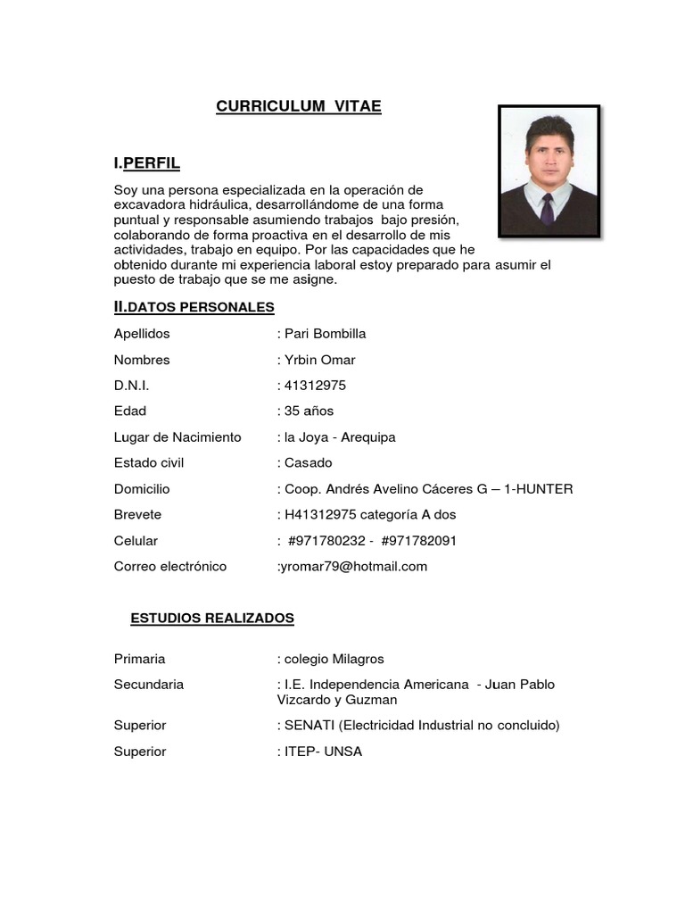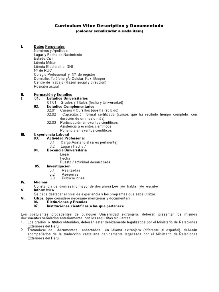 Resultado De Imagen Para Modelo De Curriculum Vitae Documentado