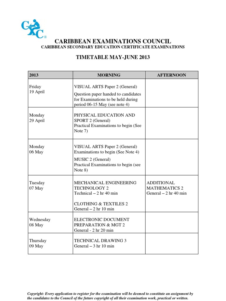 Timetable Csec 2011 May Jun Final A4 3 January 2011